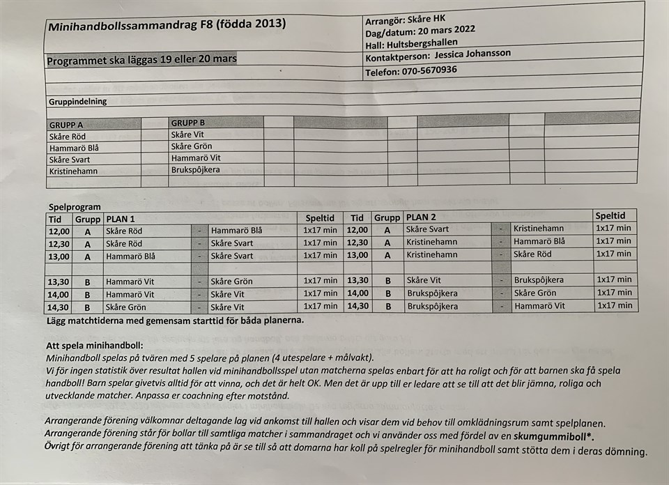 God morgon! Hoppas ni alla är laddade! Våra lag heter Skåre svart och röd och båda lagen spelar första matchen kl. 12:00 och sista kl. 13:00. Vi samlas kl. 11:30 i Hultbergshallen (Oskar, jag och kioskgänget är där redan 10:30 ifall ni önskar komma tidigare och umgås). Till er som blivit sjuka - krya! Vi ses snart! Oskar, Johan och Erik F13 (12 år) vit 20 mar 2022 1kommentar