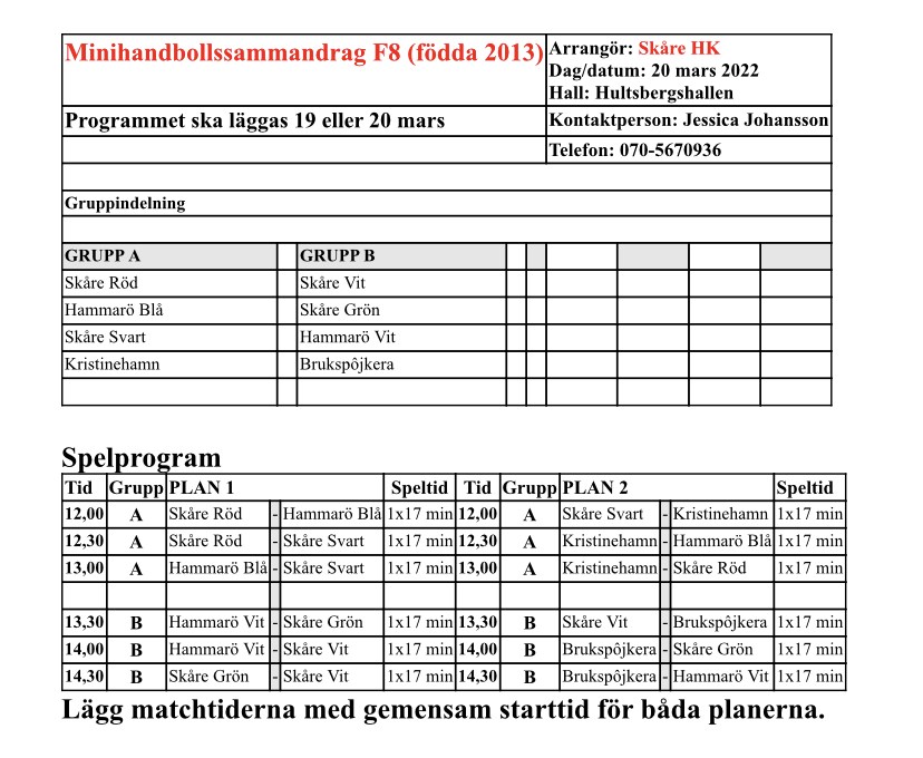 Spelschema turnering 20/3